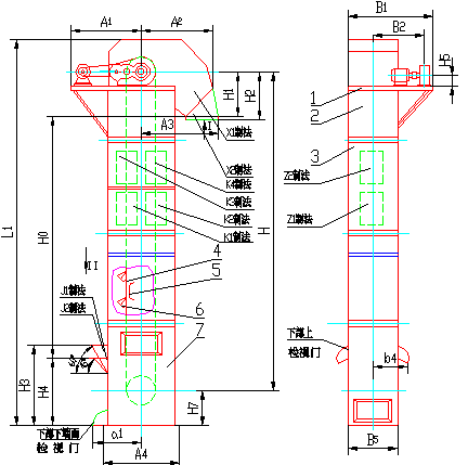 HL型環(huán)鏈離心斗式提升機(jī)外形示意圖: